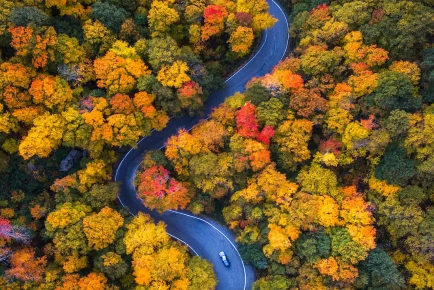 This dramatic mountain pass brings the best of leaf peeping in Vermont. Also known as “the Notch,” Route 108 is a scenic winding road surrounded by towering cliffs that lead to Mount Mansfield. During your scenic drive, you can enjoy the spectacular view from your car, but pulling off for some epic hiking is the best way to experience Smugglers’ Notch.